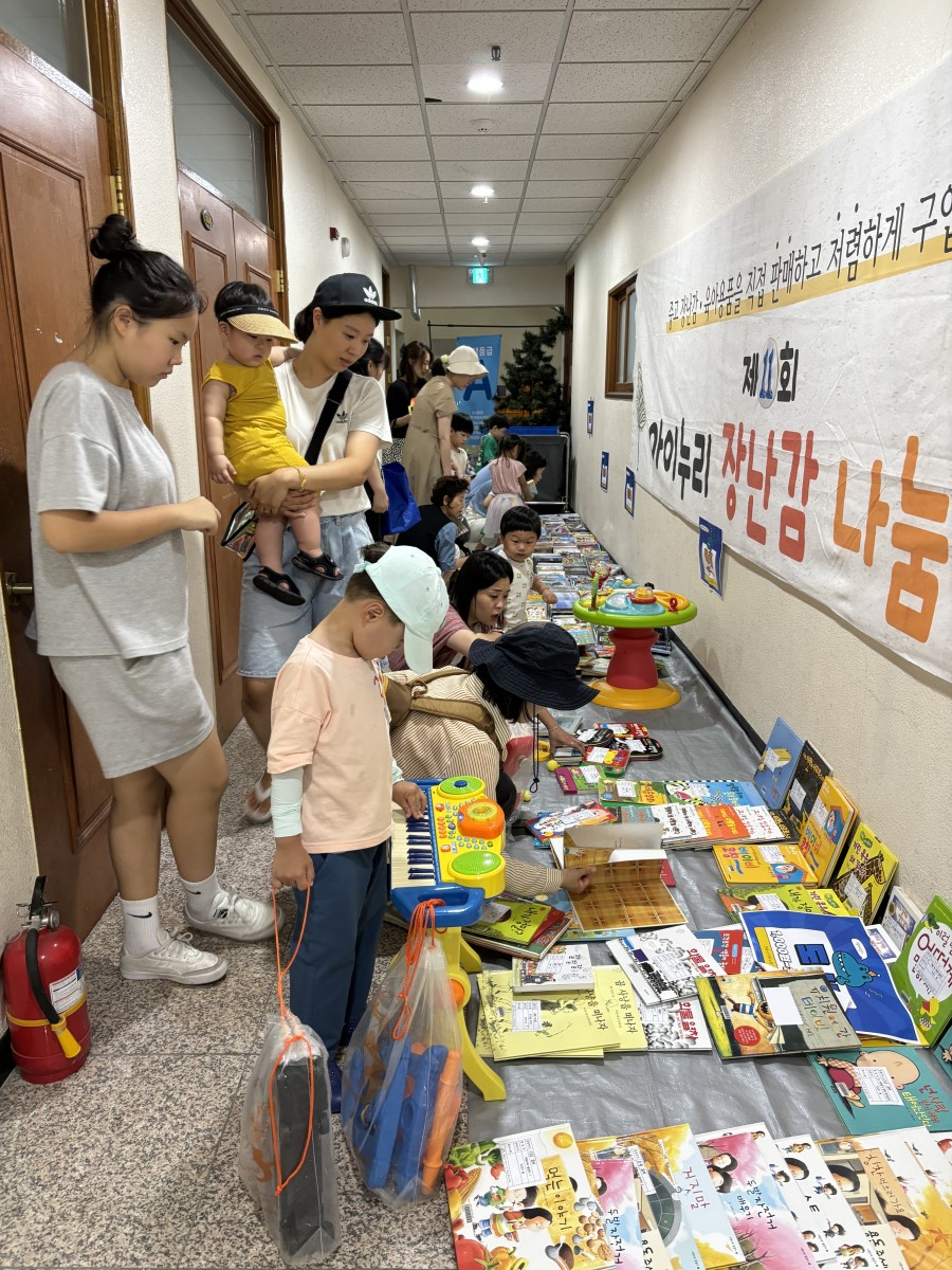 제11회 장난감 나눔장터 본문 제11회 장난감 나눔장터● 일시: 2024. 7. 13. 토 오전11시● 장소: 아이누리 장난감도서관 1,2층● 판매물품: 중고장난감, 도서, DVD 1200여점 이전글7월 편백영역 청소 및 시스템 에어컨 청소 다음글착한소문내기 시상 목록
